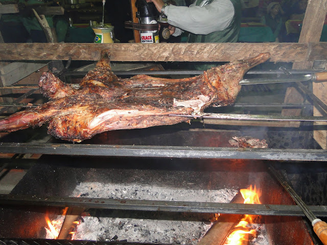 Opa, mas isso é uma ovelha, a sim, o pessoal trouxe uma ovelha inteira para acompanhar as três janelas de costela que foram pro fogo.